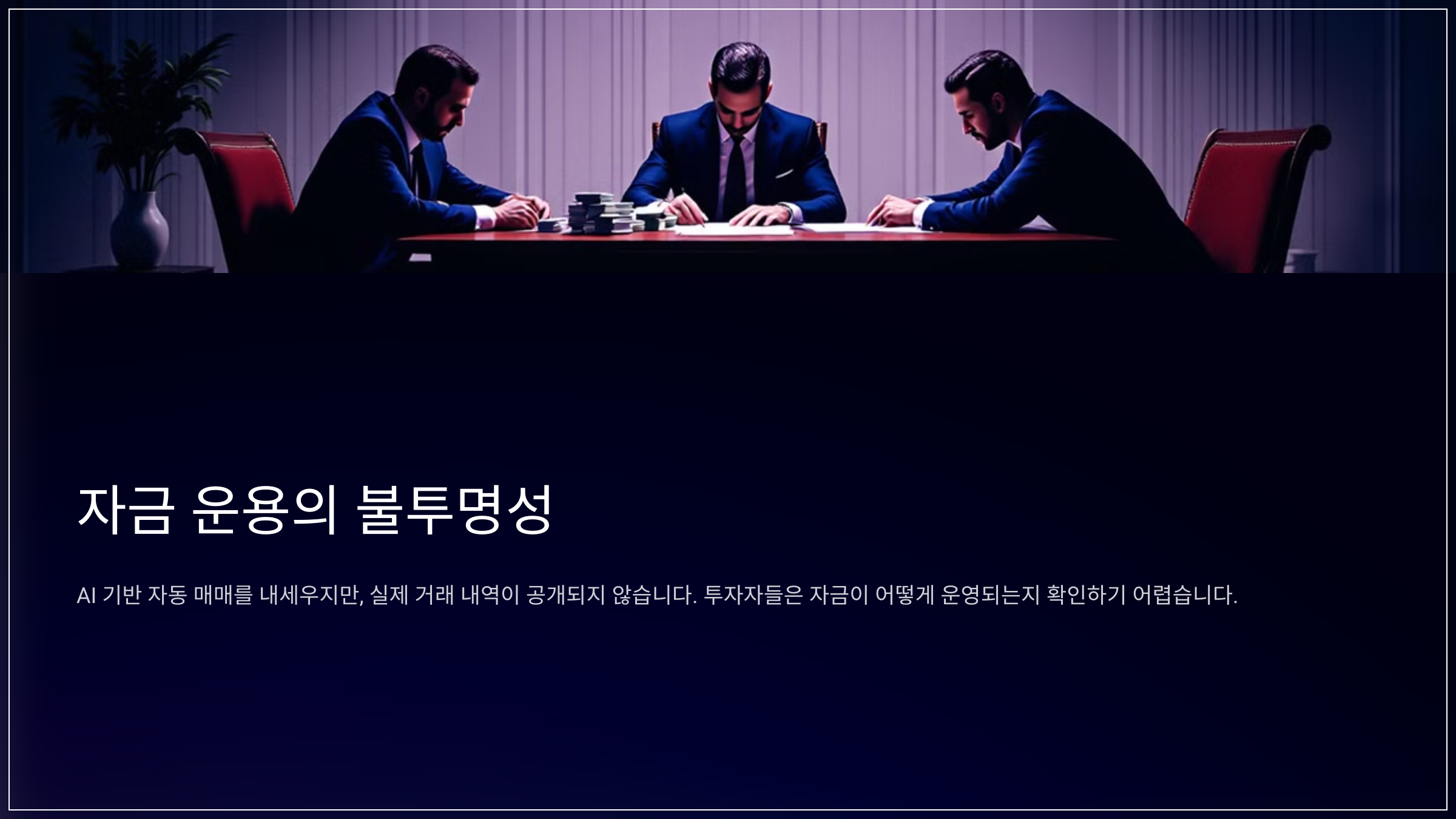 실제 거래 내역이 공개되지 않아 투자자들은 자금이 어떻게 운영되는지 확인하기 어렵다.
