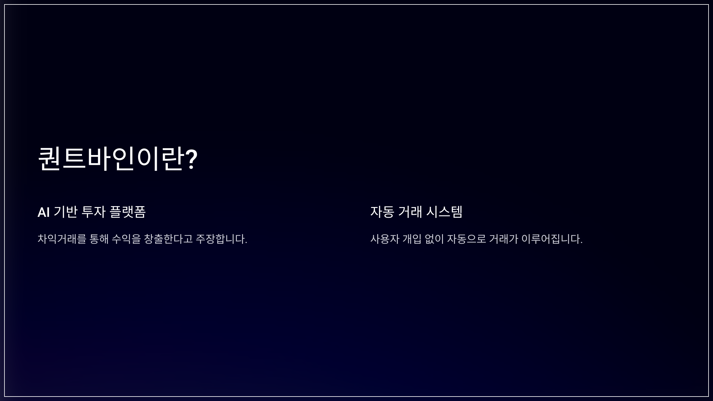 - 퀀트바인은 AI 기반 자동 매매를 내세우지만,
