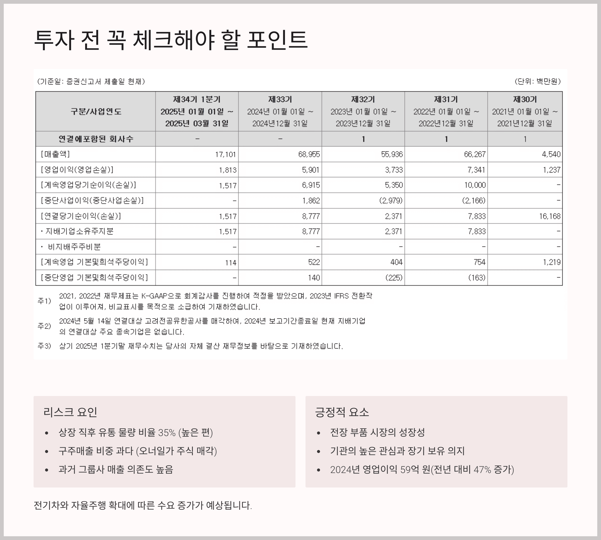 ⚠️ 전장 산업의 실적형 강자, 투자 전 꼭 체크해야 할 포인트