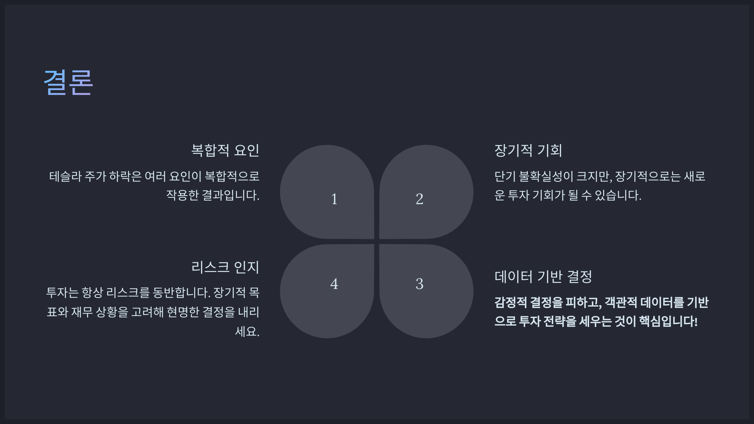 테슬라 주가 하락의 주요 원인을 분석하고, 향후 전망과 함께 현명한 투자 전략을 제시해 볼게.