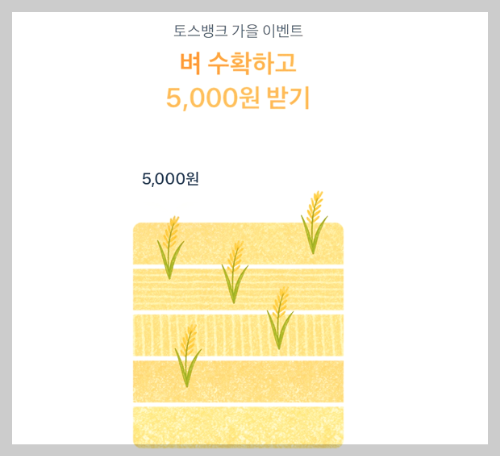 토스 벼 수확, 털기, 농사, 수학하기, 5000원 이벤트입니다. 짧은 시간 투자로 확실한 보상을 얻는 이벤트라면 관심이 갈 수밖에 없습니다.