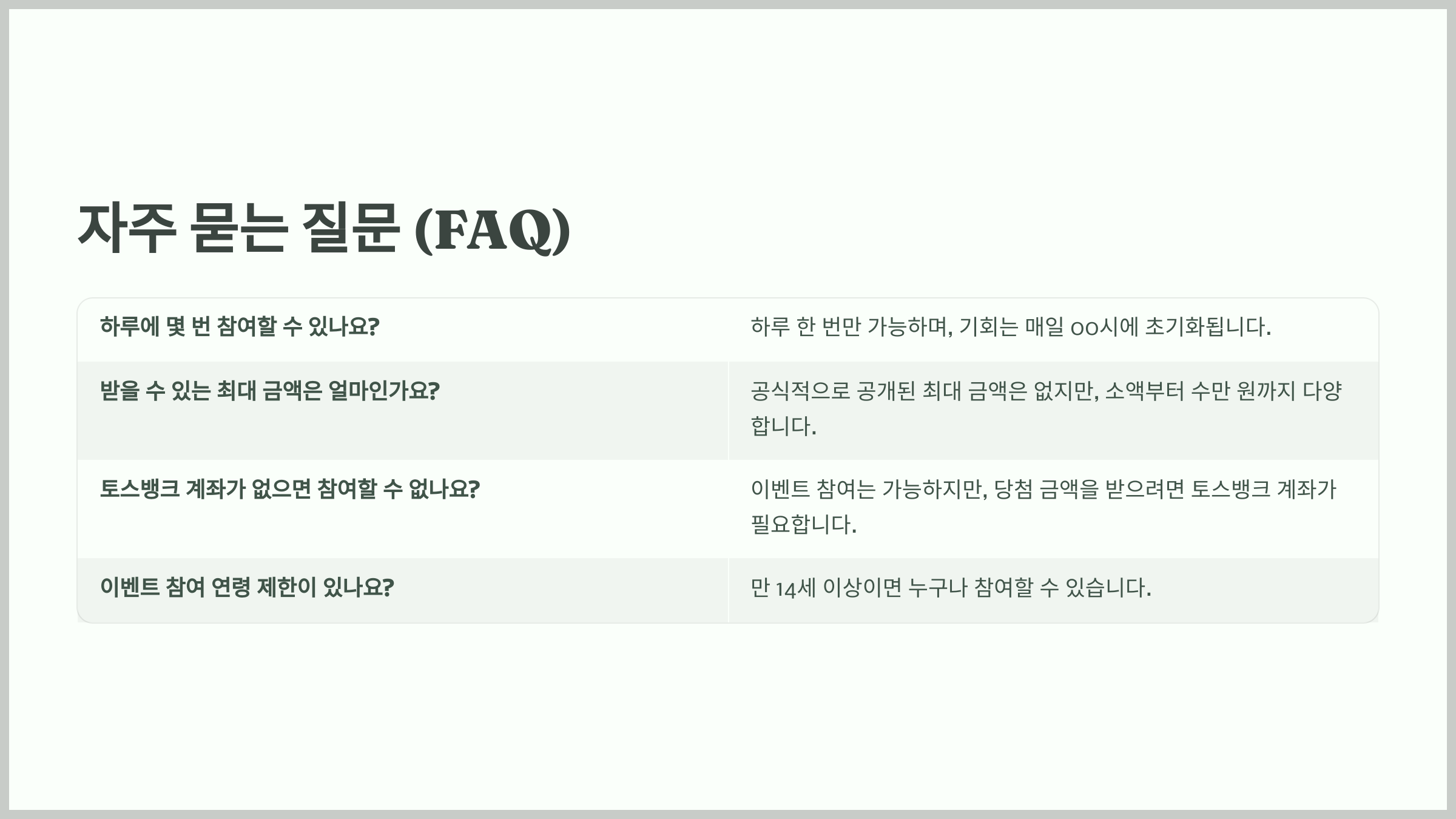 - 토스뱅크 계좌 필요: 당첨된 금액을 받으려면 토스뱅크 계좌가 필수다.