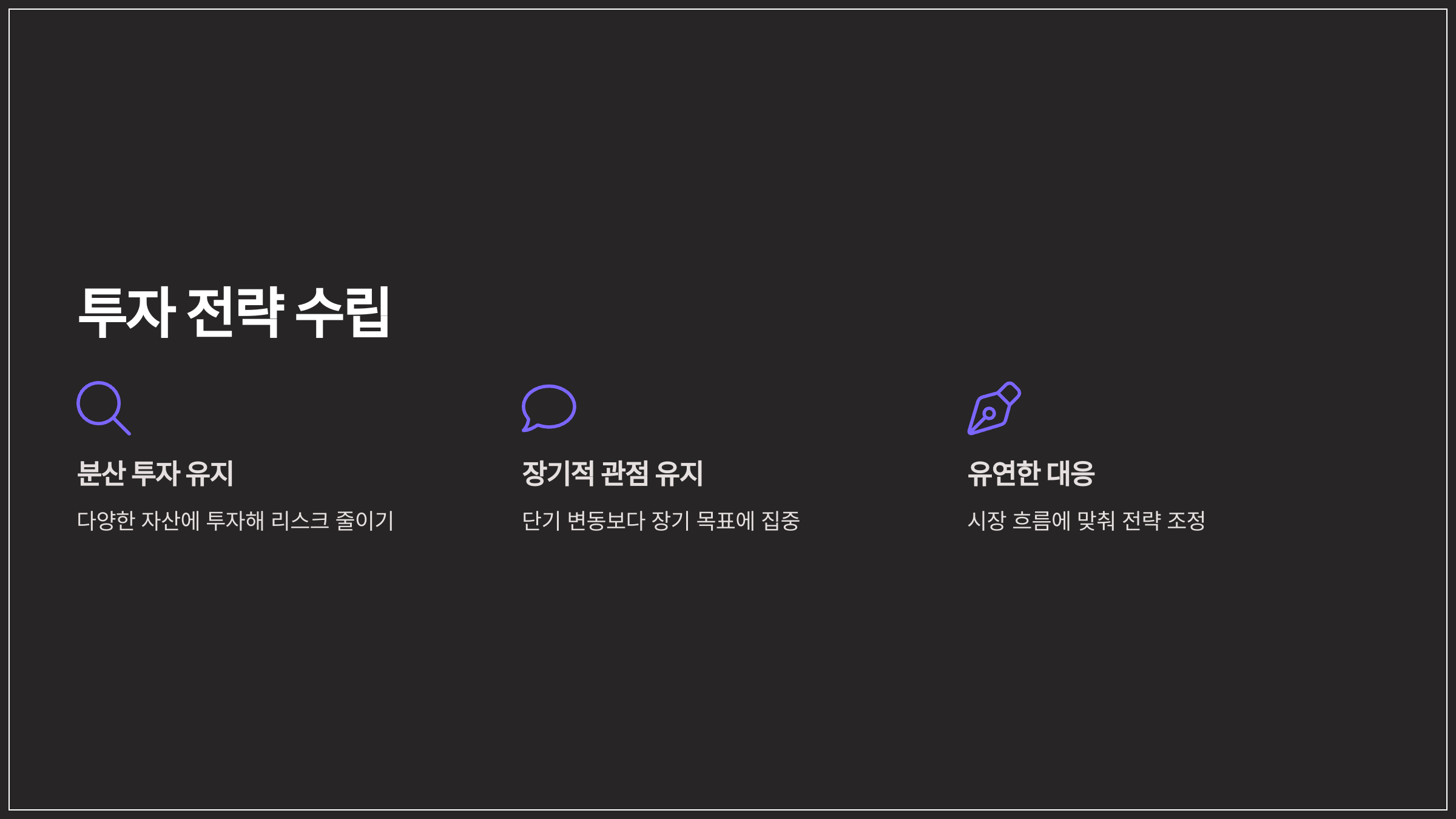 단기적인 시장 변동에 흔들리지 않고 장기적인 투자 목표에 초점을 맞춘다.