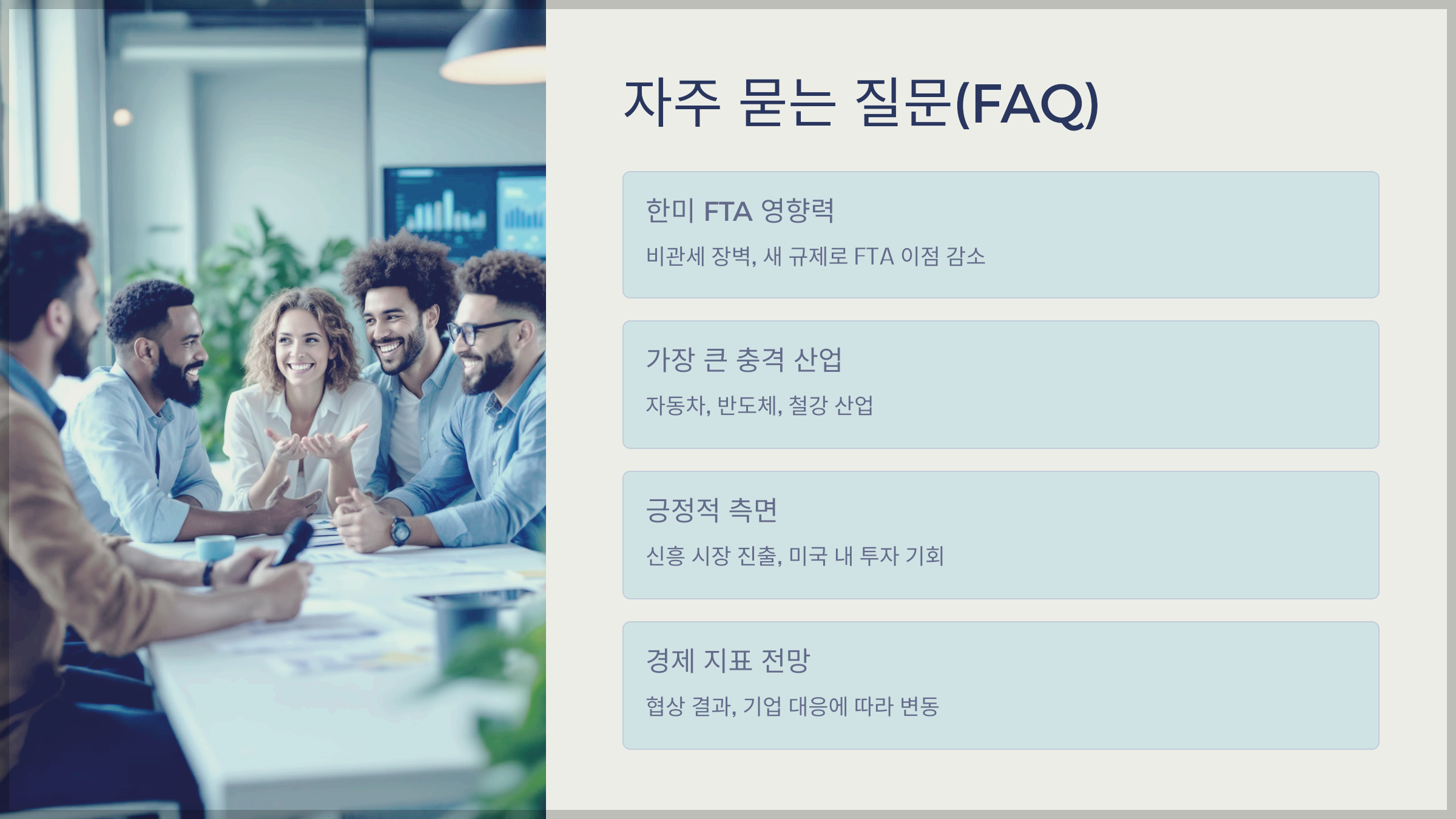 비관세 장벽까지 동원되면, 한미 FTA로 관세 혜택을 받더라도 인증 절차나 규제 측면에서 걸림돌이 늘어날 수 있다. 배출가스 기준, 디지털서비스세, 보조금 규제 등이 새롭게 적용되면 전통적인 관세 감면 이점이 빛바래기 쉽다.