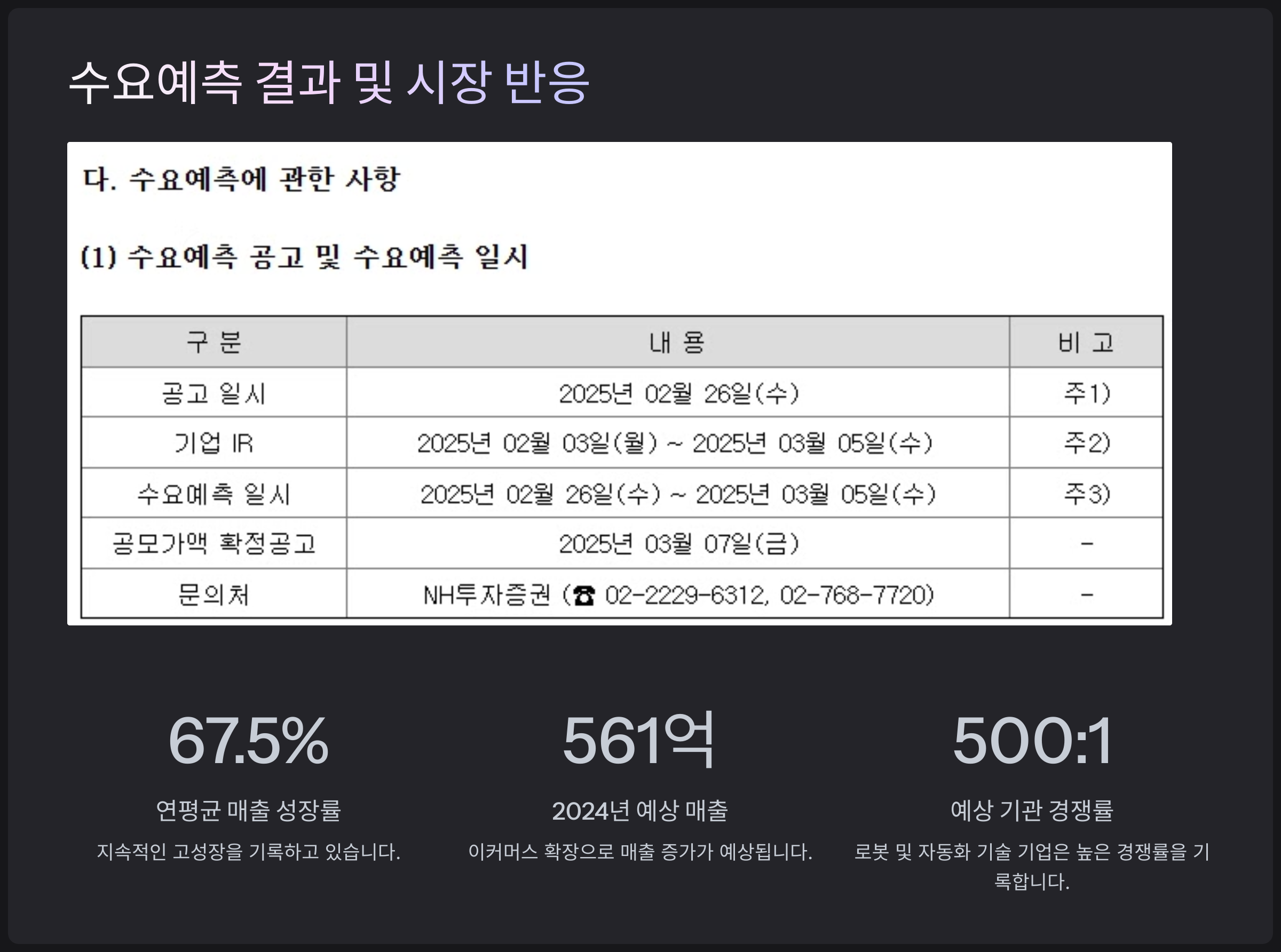 최근 몇 년간 공모주 시장을 살펴보면, 로봇 및 자동화 기술 관련 기업은 높은 기관 수요예측 경쟁률을 기록하는 경우가 많다.