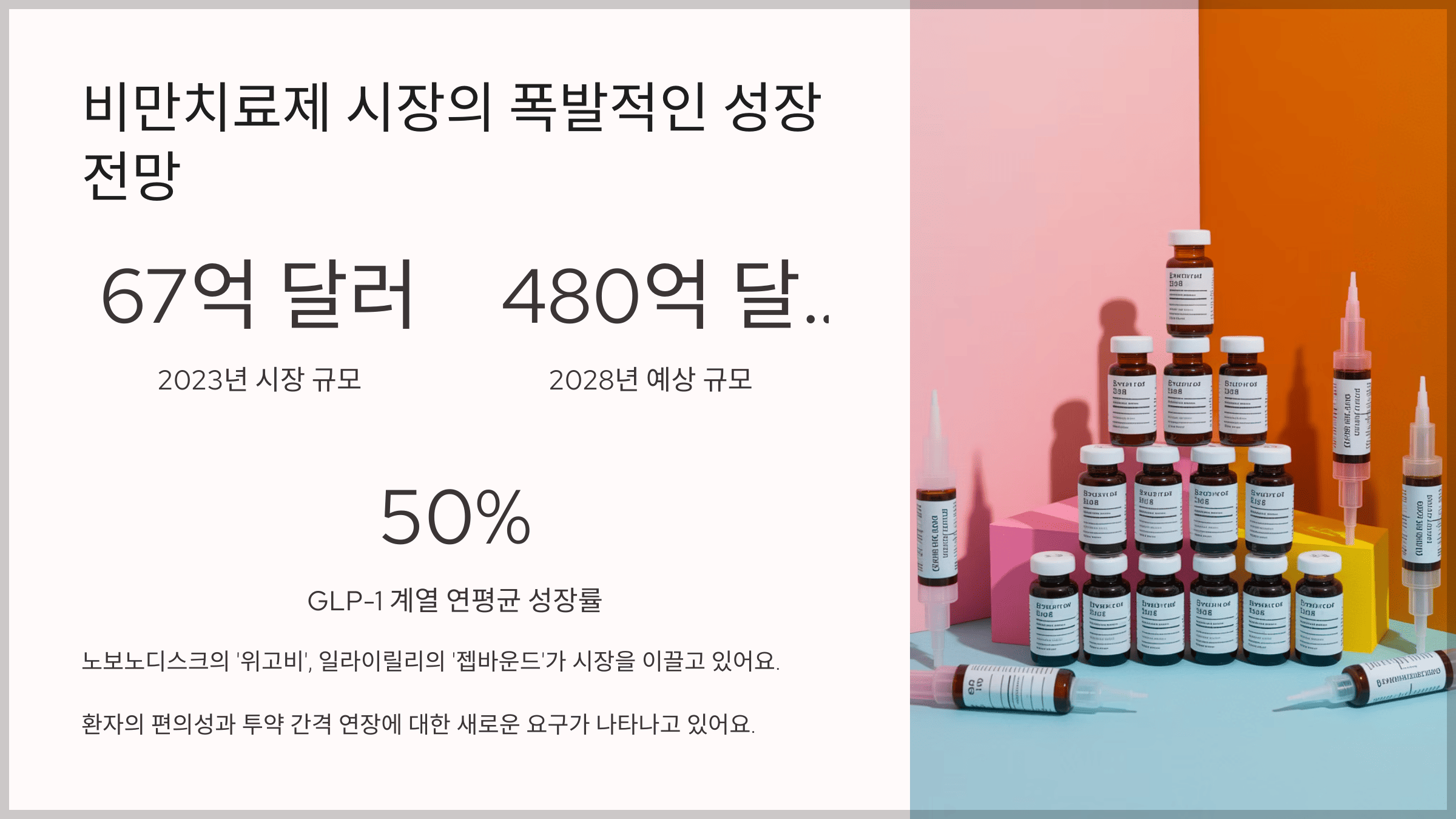 - GLP-1 계열 약물은 연평균 성장률 50%로 고성장