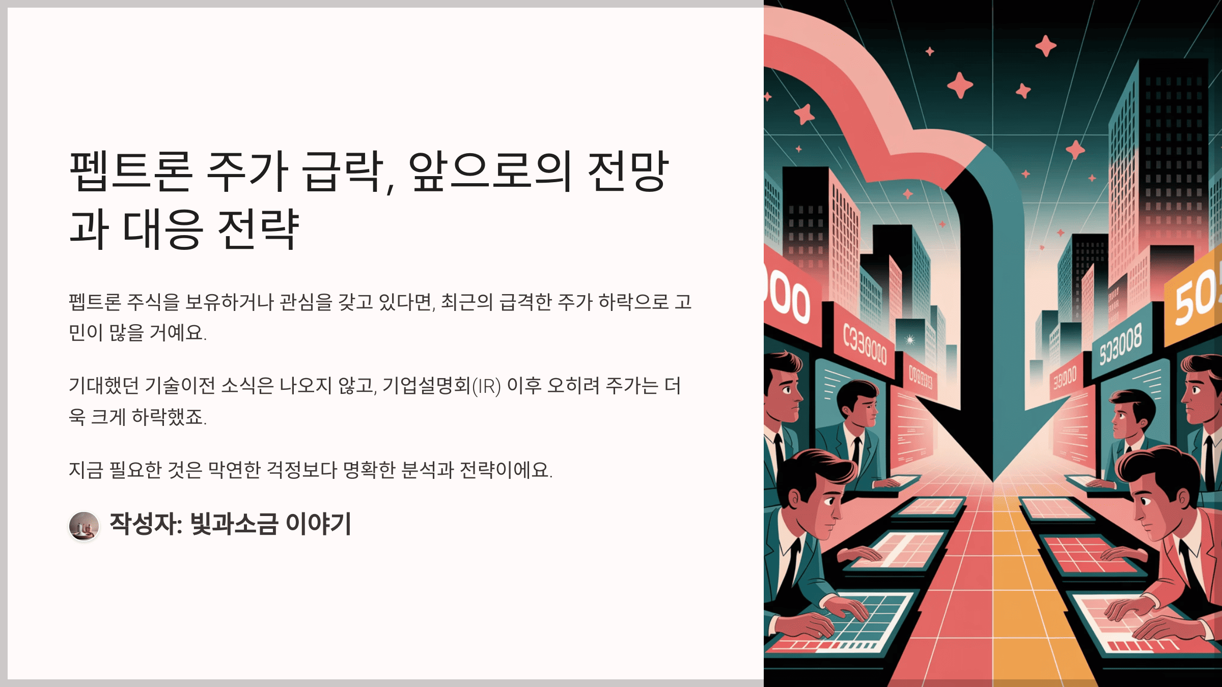 하지만 지금 필요한 것은 막연한 걱정보다 명확한 분석과 전략이에요. 오늘은 펩트론 주가가 왜 하락했는지, 향후 회복 가능성은 어느 정도인지, 앞으로 투자 전략은 어떻게 세워야 할지 구체적으로 짚어볼게요.