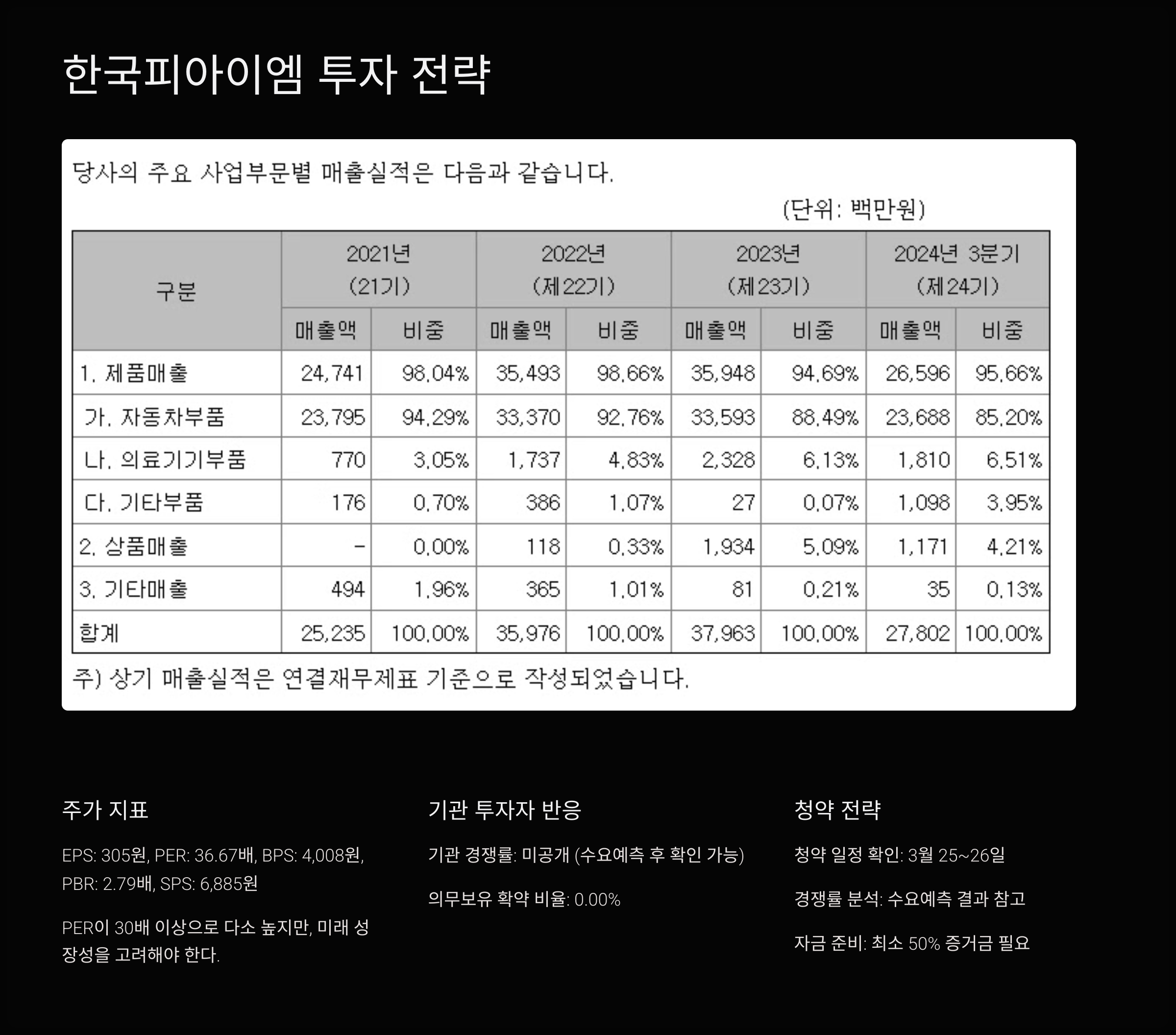 📊 한국피아이엠 투자 전략