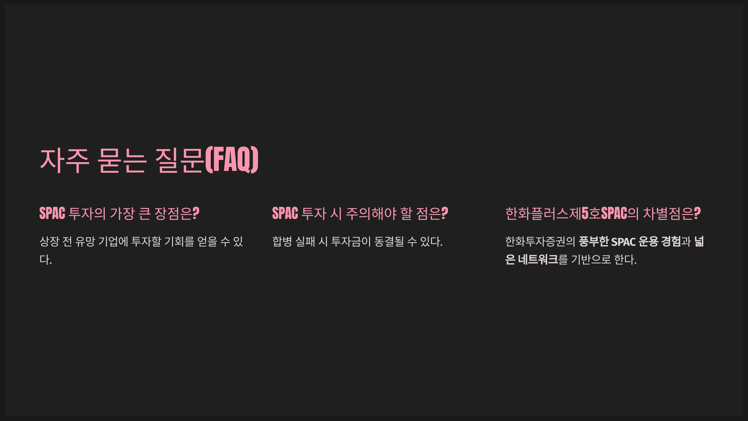 👉 한화투자증권의 풍부한 SPAC 운용 경험과 넓은 네트워크를 기반으로,