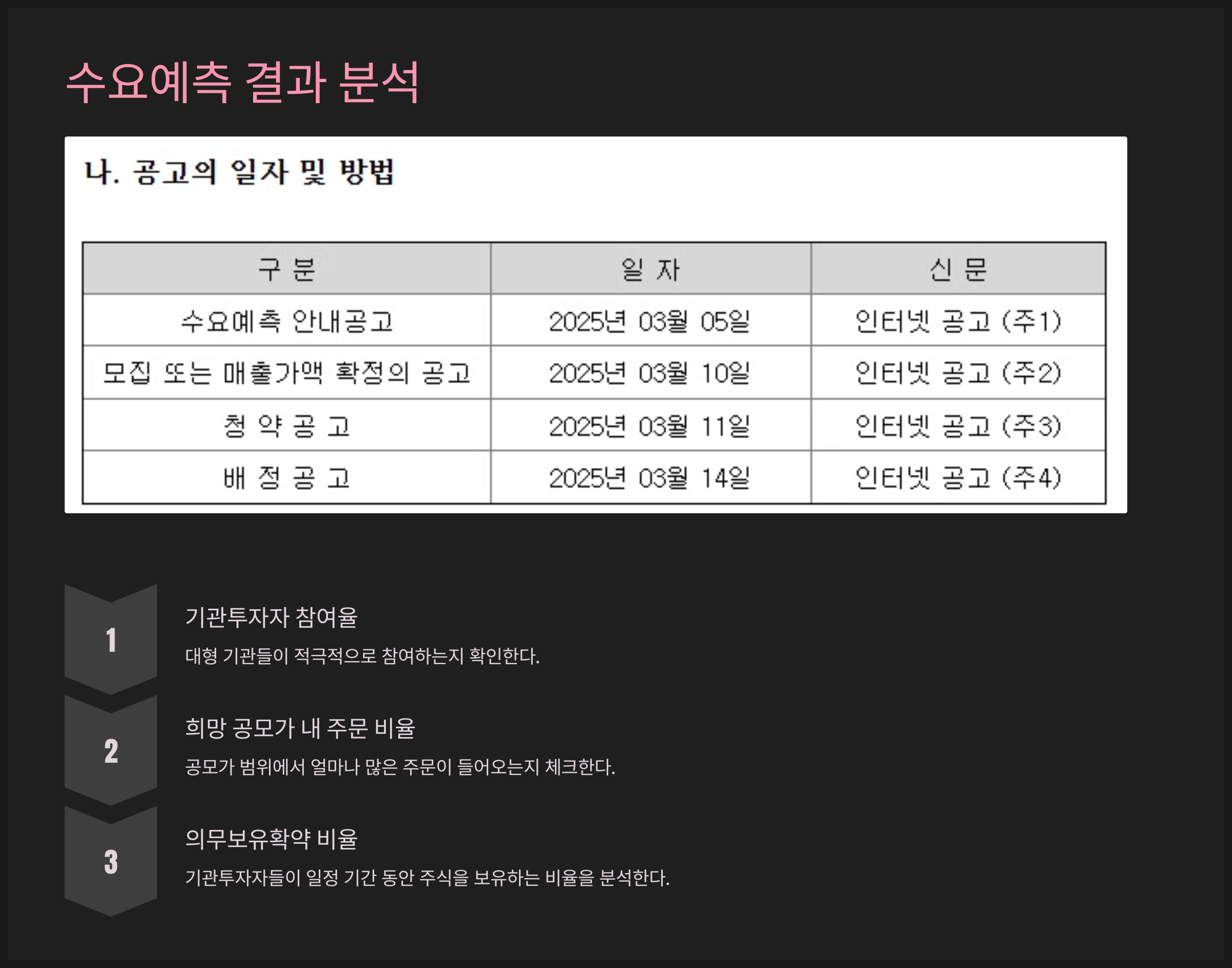 ✅ 공모 일정과 수요예측 결과를 지속적으로 확인하자.