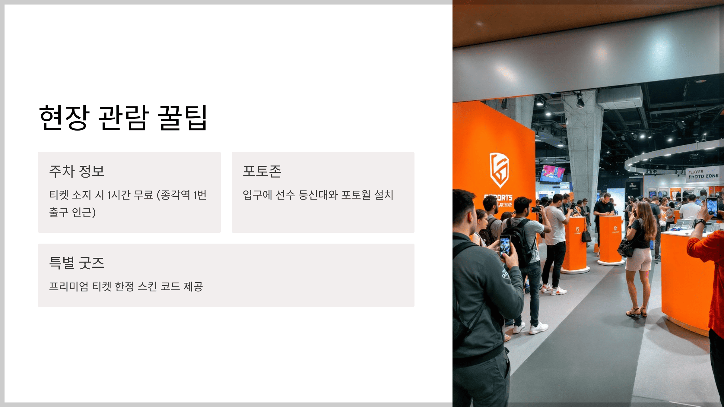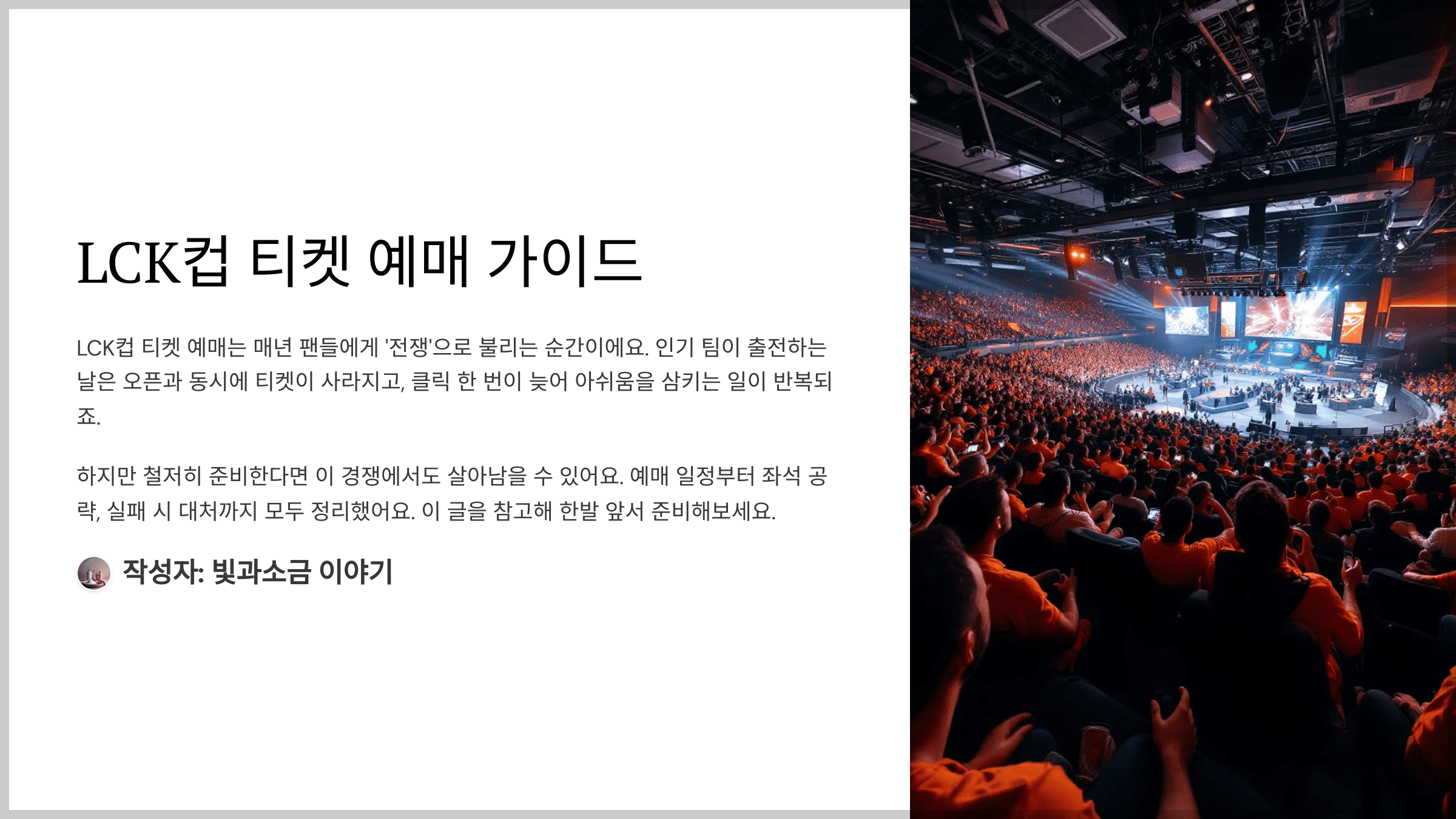 - 팬 커뮤니티 활용: DCinside LCK 갤러리 등에서 양도 티켓 확인 (신분 인증 필수)