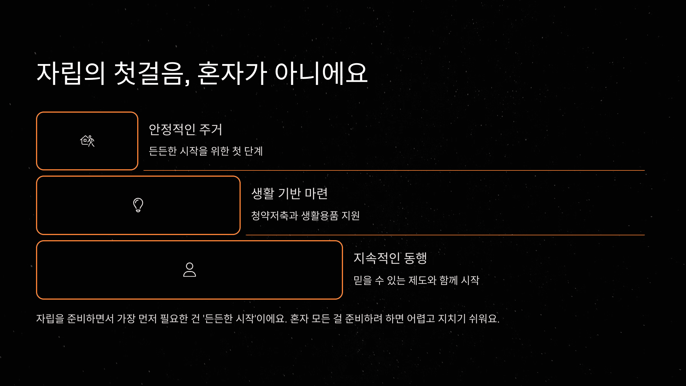 자립은 주거만으로 완성되지 않죠.