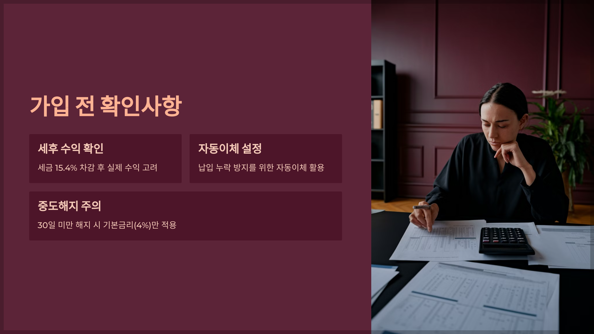 👉 높은 금리만 보고 가입하는 것이 아니라, 실제 받을 수 있는 금액을 고려하는 것이 중요하다.