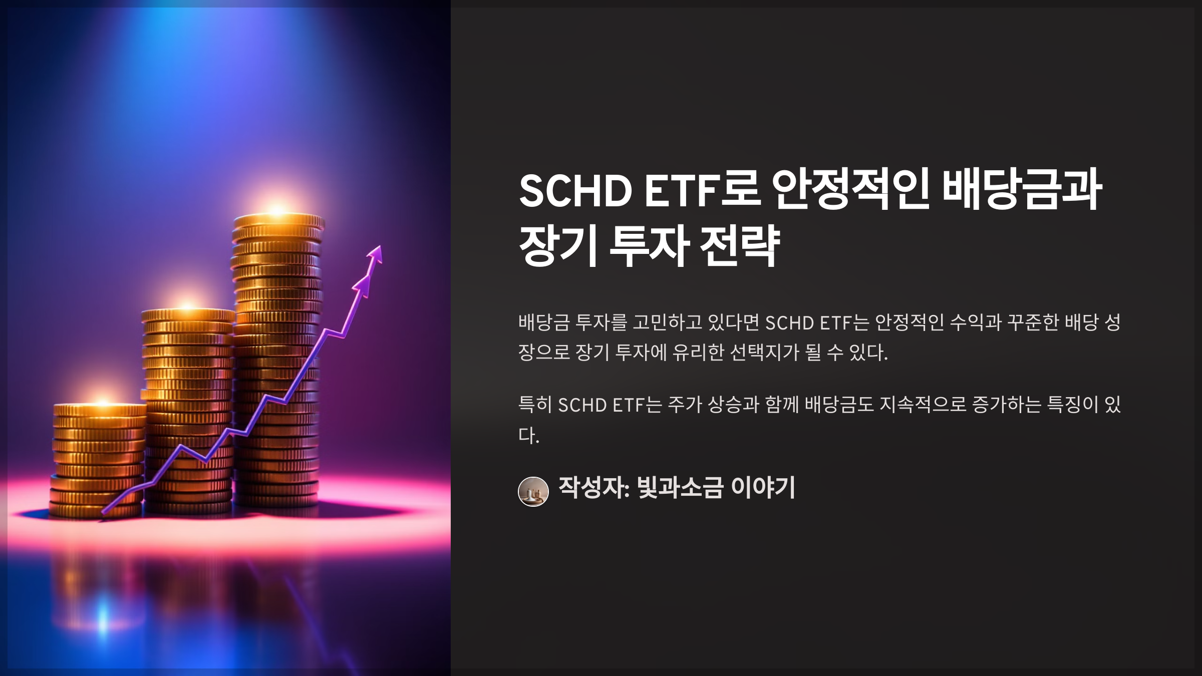 SCHD ETF로 안정적인 배당금과 장기 투자 전략입니다. 배당금 투자를 고민하고 있다면 SCHD ETF는 안정적인 수익과 꾸준한 배당 성장으로 장기 투자에 유리한 선택지가 될 수 있다.
