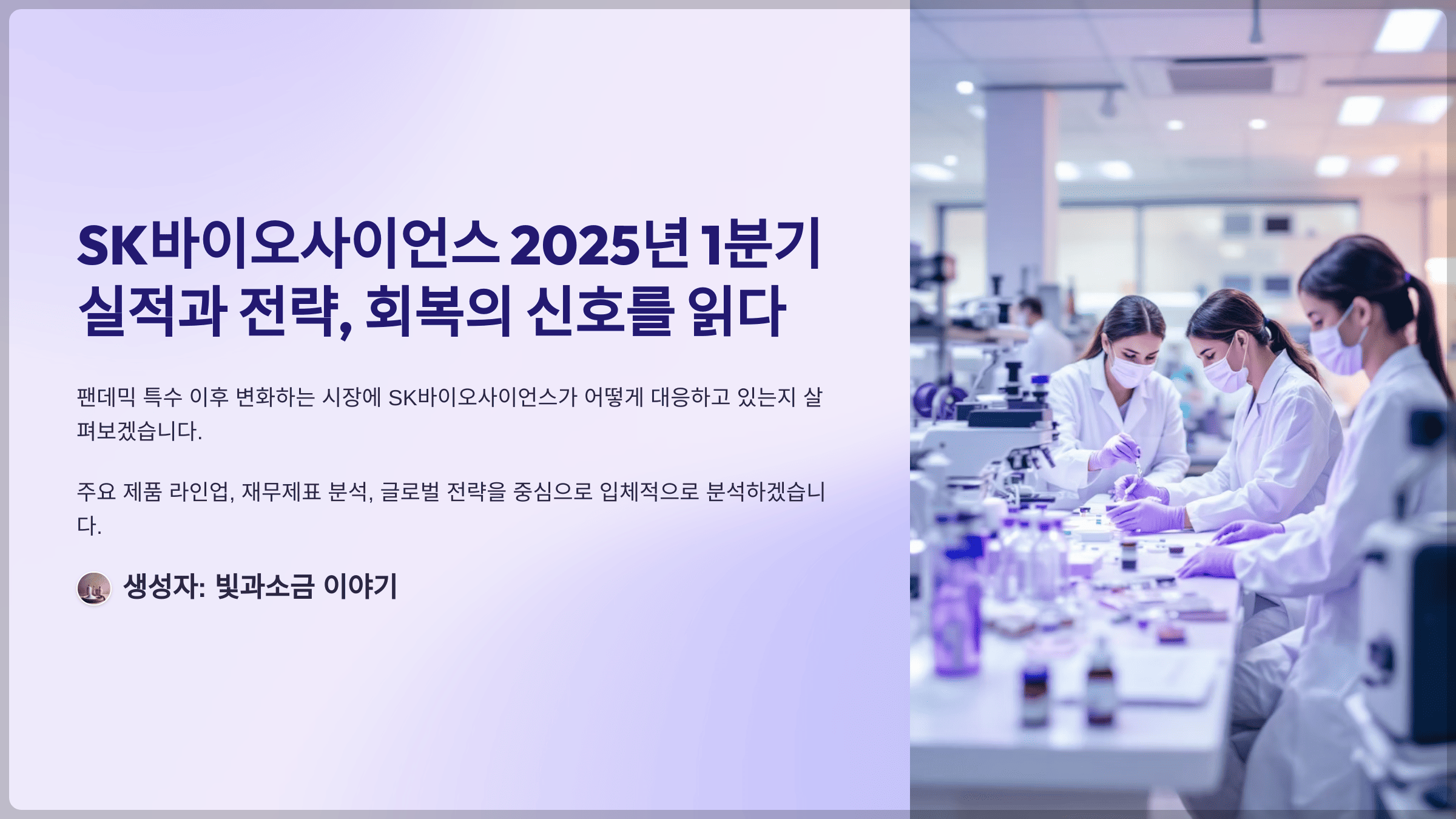 SK바이오사이언스 2025년 1분기 실적과 전략, 회복의 신호를 읽다. 2025년 1분기, SK바이오사이언스가 발표한 실적은 다시금 많은 이들의 주목을 받고 있습니다.