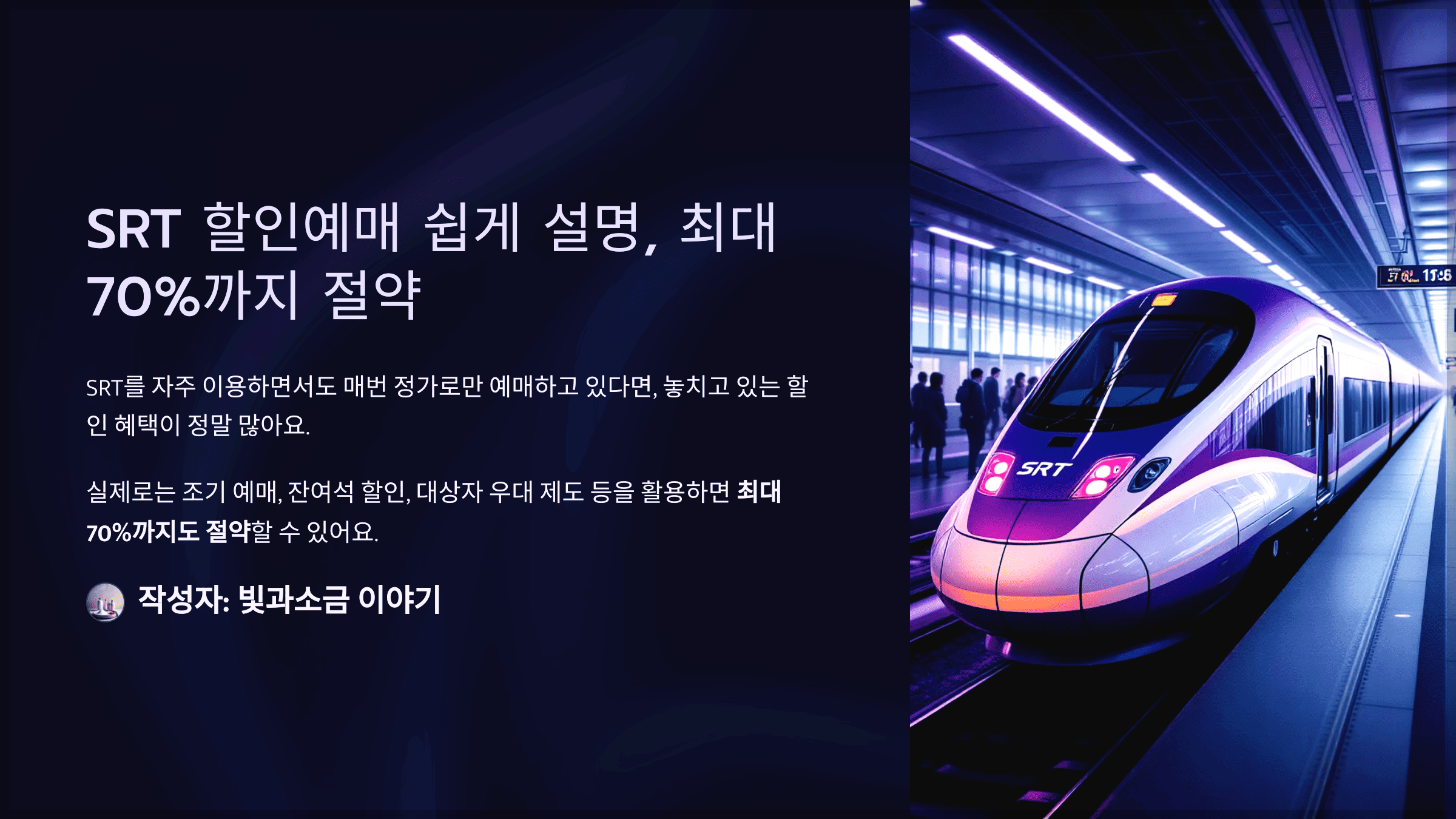 SRT 할인예매 쉽게 설명, 최대 70%까지 절약입니다. SRT를 자주 이용하면서도 매번 정가로만 예매하고 있다면, 놓치고 있는 할인 혜택이 정말 많아요. 실제로는 조기 예매, 잔여석 할인, 대상자 우대 제도 등을 활용하면 최대 70%까지도 절약할 수 있어요.